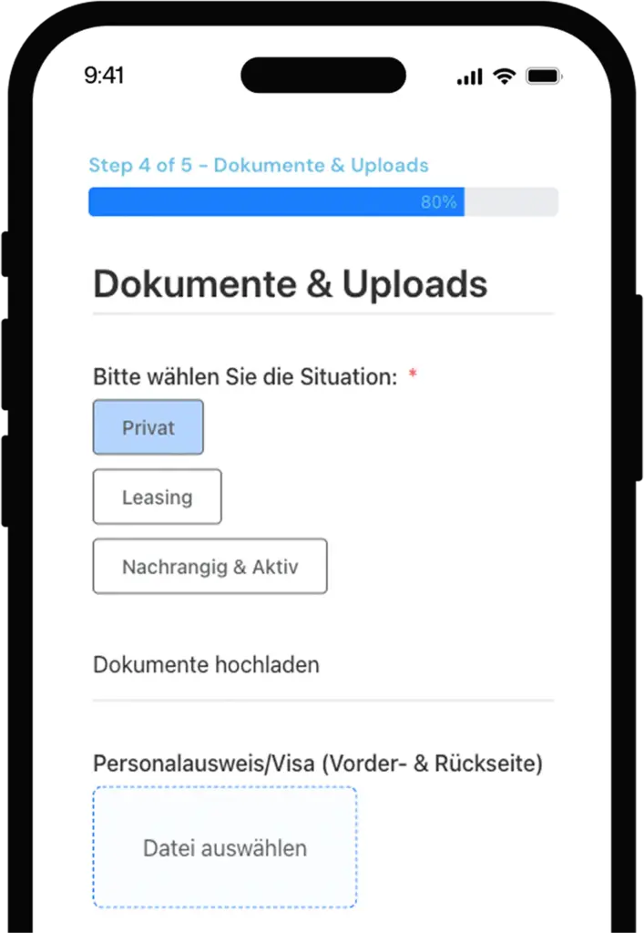 Beantragen Sie Ihre Zulassung rund um die Uhr. Mit sicherer Bezahlung, persönlichem WhatsApp-Support und Expressbearbeitung machen wir den gesamten Prozess stressfrei.